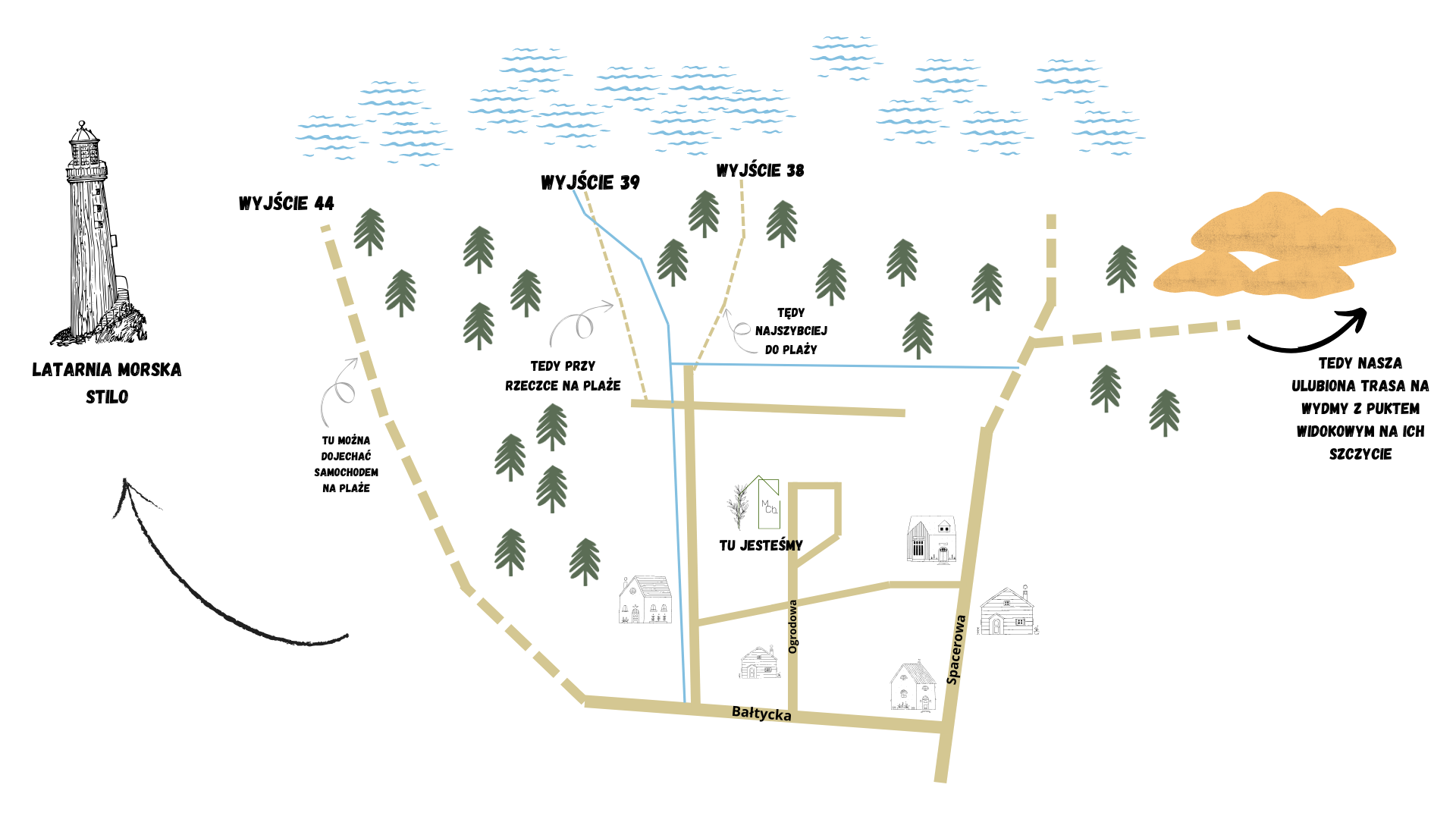 Chcecie Państwo spędzić Miłe Chwile na łonie natury!? Zapraszamy do nas! Miłe Chwile czekają! Domki usytuowane są w urokliwym zakątku Polski. Wokół malownicze lasy sosnowe. Krótki spacer...i znajdziecie się na przepięknej plaży, pełnej perłowego piasku. Wnętrza domków to połączenie drewnianej architektury z funkcjonalnym designem. Naturalne materiały wykończeniowe dodają im wyjątkowego uroku. Każdy detal jest tu przemyślany. Zapewniamy, że spędzicie tu Państwo miło czas. Dopełni go szum morza i zapach traw.